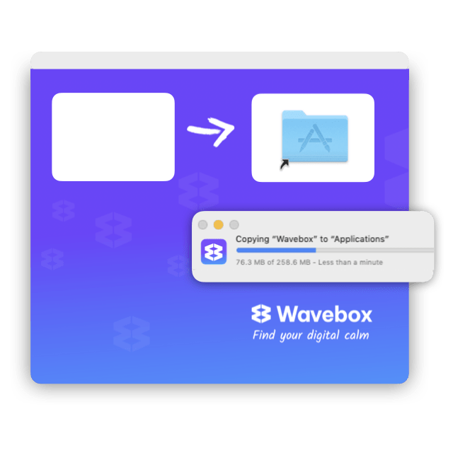 From the pop-up window, drag the Wavebox icon into the Applications folder then close the window.